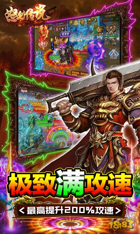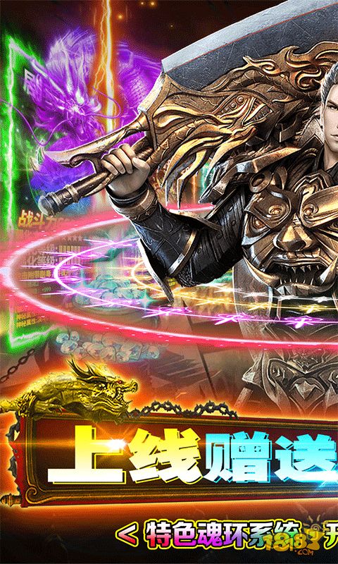 【怒剑传说】:上线送满级VIP、100W钻石、十年魂环、称号“刀刀爆充值”、限定体验时装。特色魂环系统,升级魂环还可提升对应属性。上线极致攻速体验,最高可提升200%攻速。激情PK,自由交易,在线回收,装备全靠打,小怪爆终极。