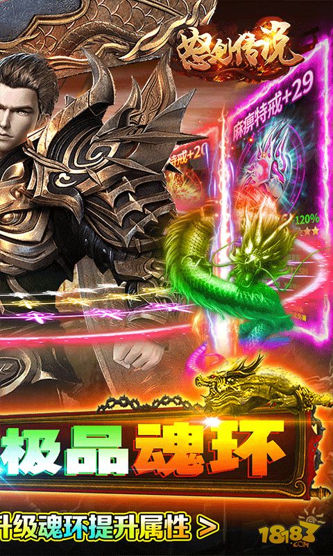 【怒剑传说】:上线送满级VIP、100W钻石、十年魂环、称号“刀刀爆充值”、限定体验时装。特色魂环系统,升级魂环还可提升对应属性。上线极致攻速体验,最高可提升200%攻速。激情PK,自由交易,在线回收,装备全靠打,小怪爆终极。