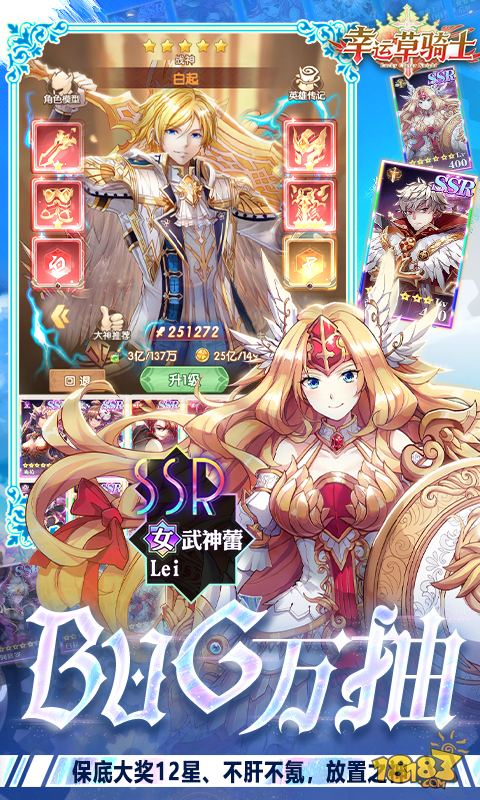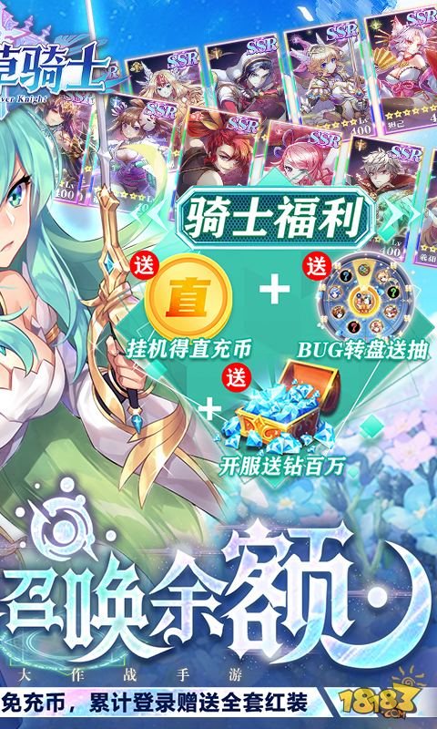 《幸运草骑士》是一款二次元的放置类手游。游戏以一个架空的世界观的幻想世界,在这片神奇的大陆中,拥有来自不同时空的英雄,还有全新魂器系统上线,激活对应魂器可使上阵英雄获得超强属性,而玩家作为幸运草骑士率领着各族英雄不断磨练自己,同时守护强大力量的幸运草,限定妖王-海拉与你一起守护幻想世界,累计登录八天赠送全套红一星装备,全服装备,齐心协力对抗肆虐在大陆上的邪恶力量。