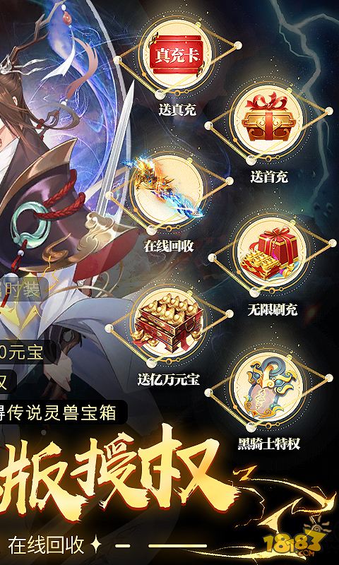 一、上线送满级VIP、充值大礼包、元宝*88888、铜钱5000万 二、在线免费送首充 三、黑骑士专属特权装备在线回收 四、自动放置无限刷充 五、签到领取千元真充 六、亿万元宝免费领取,不花钱也能当大佬