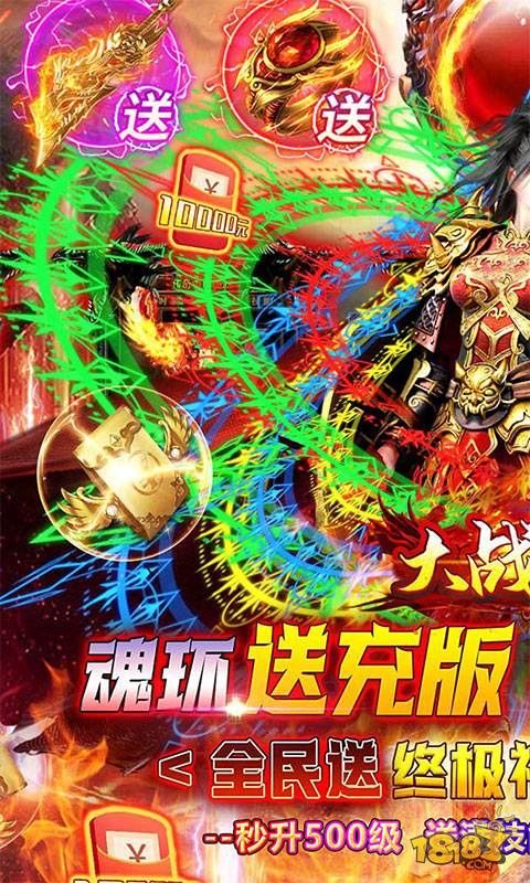 大战国(魂环送充版)创角免费领取:直达500级+刀刀百分比切割+终极技能+终极神器四件套,开局爽翻天,每日登录可以领取真实充值,打怪还能再领取海量真充,充值还能领取无敌魂环,魂环附带超强buff,零氪一样也能爽,游戏内超多大陆,等你来战!!