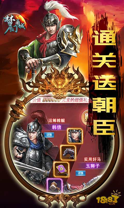 1、上线送铜钱188兆,粮草188兆,兵员188兆,元宝200000 2、天天在线领取领真充值卡、GM商城卡,超多福利等你来领! 3、在线活跃免费领取月卡激活卡,通关领取朝臣 4、7日签到领取战国名将白起,15日签到领取祖龙嬴政,畅爽开局等你体验!