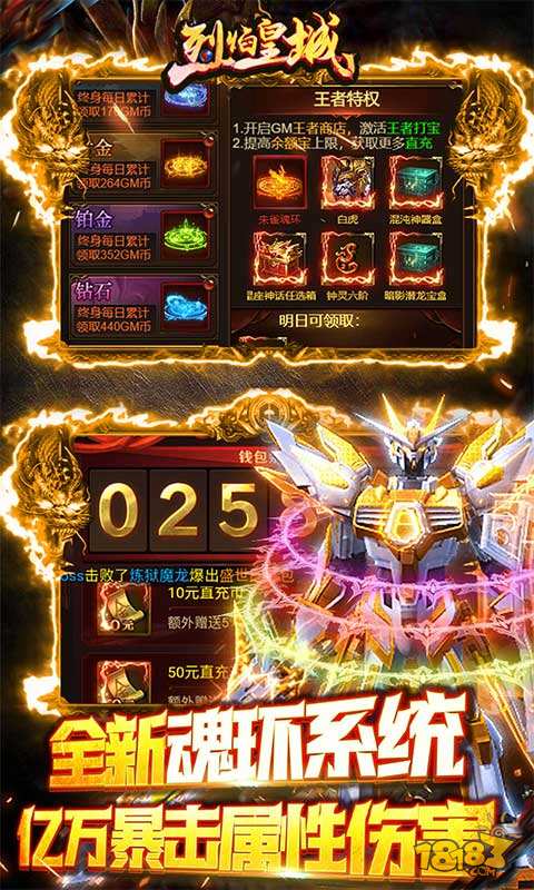 烈焰皇城变态版让你游戏更加畅快!上线送钻石,元宝,金币、vip等级,在这里你可以体验到各种福利。