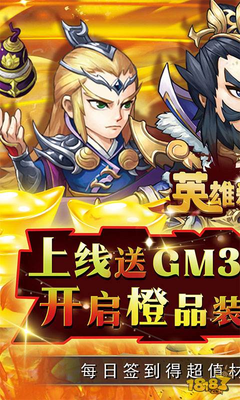 上线福利:元宝*100w GM3 铜币*100w 至尊宝箱*1 1.上线即送至尊宝箱,开启获得橙品装备助你提升战力! 2.创角直达GM3,GM3科技免充商城道具1元宝畅购 3.每日签到得超值材料,更有大乔碎片 4.累计登录送百抽,橙品3星装备自选 5.全民升级拿点将券,海量充值卡等你来