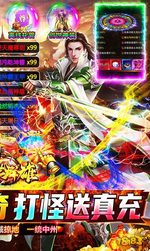 ★上线即赠 钻石*50000、元宝*1亿、战神币*10万 ★首充任意金额,送绝品神兵武器,高阶装备,千万元宝 ★每日签到领豪礼,海量红包送不停 ★上线免费送vip,更有极品大礼包免费领取 ★游戏一键离线托管,让你挂机无忧 ★冲级领大奖,无限豪礼等你来拿 ★每日限购礼包 超值返利,免费领取