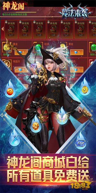 1.上线即送满V、贵族6、188W金钻!在线10分钟就送神兵,开局奖励绝不抠门! 2.来玩就送打金特权,破解无限刷充;金钻和真充都能无限刷,每日参与游戏玩法副本,快来实现打金自由! 3.挂机刷经验和击杀boss都能快速增加游戏余额,余额可替代RMB进行免费充值! 4.快到极致的升级体验,升级速度超级加倍、千万战力送不停! 5.免费赠送豪华首充,内送SSS英雄万龙之母,酷炫羽翼,百万钻石卡,助你开局横扫魔法大陆! 6.神龙阁游戏内部的bug商城,所有道具免费送,不一分花钱也能体验买买买土豪感觉!