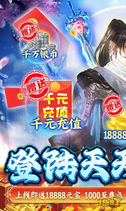 1.18888元宝、10/30/98/198/328/648充值卡各一张、10000000银币、VIP15、1000至尊点 2.签到天天送充值,挂机就送充值大礼包 3.豪华至尊商城,超爽体验 4.七日登陆送圣品法宝,战力一键飞升 5.超低折扣至尊卡,一键直升满级SVIP,附赠价值千元大礼包,等级一键飞升。