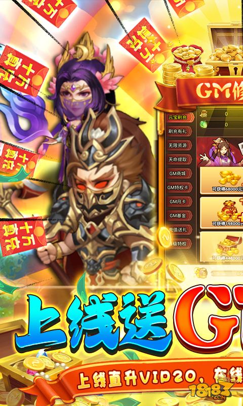1.上线直升VIP20 2.上线就送GM修改器 3.在线挂机即领海量GM额度卡与培养物资 4.每日在线即可获取海量真充 5.不管是闯关还是打BOSS爆装备,都可以获得额度卡可激活一系列运营活动和充值 6.线下充值返利,元宝拿到手抽筋。还有线下活动礼包,让你一步登顶 7.线上线下活动双重出击不停歇,福利满满