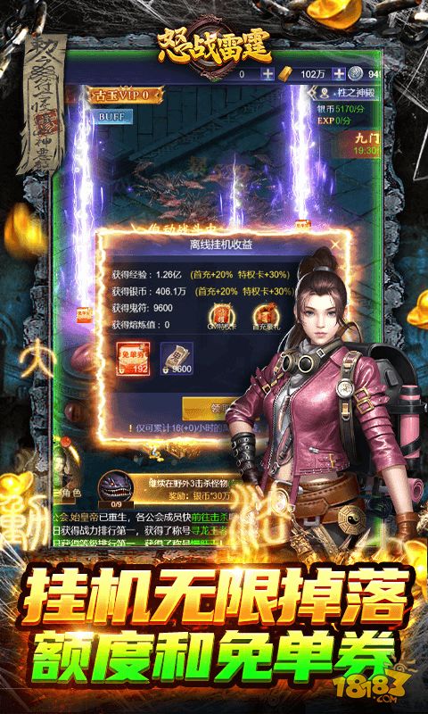 《怒战雷霆》是一款特效华丽建模精致的挂机冒险手游!为玩家们精心策划GM修改器!使用GM修改器可免费充值,免费购买首充、GM神装、GM坐骑、月卡、免单券等一系列内容,使用后还能激活大量累充活动!挂机可掉落大量GM余额和免单券碎片,简直就是不用花钱都能玩!登录即送GMVIP6、100万金条、100万银两!所有BOSS爆率超高,轻松神装毕业!此游戏完全参照鬼吹灯的剧情打造,不管是失落的琼楼宝殿-精绝古城、神秘古老的龙岭迷窟、埋藏在深渊之下的云南虫谷、冰川水晶尸的昆仑神宫还是神秘幽远的怒晴湘西都能在游戏内体验到!就让大家从摸金、发丘、搬山、卸岭中来熟悉这款不肝不氪的《怒战雷霆》吧!