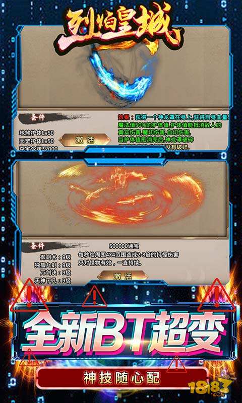 烈焰皇城(GM魂环超变)是一款打金超变传奇,GM送扶持每日海量真充,玩的越久送的越多,会员无需充值,完成任务免费激活,零氪一样爽!游戏内百种BUFF,多种至强绝技超爽超BT!游戏内独创副职专精玩法:血色骑士、暗夜刺客、近战法师,随心搭配,玩出独一无二的传奇!!!