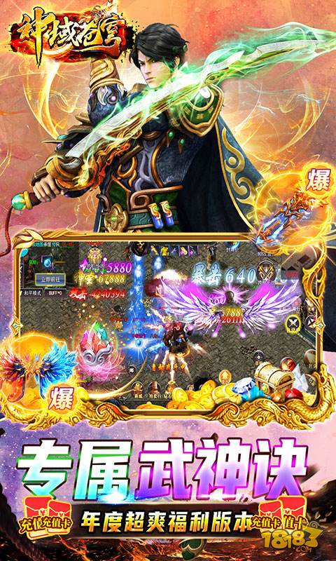 神域苍穹(当托刷充魂环)全新地图、全新福利、全新专属武神诀系统,刀刀切割无视防御!开服送当托魂环、 5000元充值、专属当托号!全图爆真实充值,开局爆满背包红包+元宝,更有惊喜至臻狂暴之力,年度超爽福利 版本,全角色攻速大提升,开局开砍,暴爽打金!
