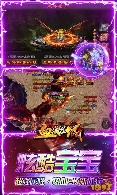 《血战龙城(神宠超爆版)》是一款火龙极品二合一的复古传奇手游,非常好玩,上线神宠相伴,每日还可以白领货币和游戏材料,活动多样,操作简单,精心打造超高爆率,小怪也能爆终极,酷爽起飞,只要花点时间,人人终极套攻沙,只为人气和激情,给玩家带来极致快感!爆率高,装备好出,材料好爆好打,让您体验到原汁原味的复古传奇版本!快来加入我们一起砍传奇!