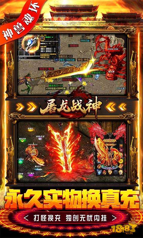 屠龙战神(首款神兽魂环)携神兽&魂环双系统,优质内挂系统革新上线! 创角即送终极技能、刀刀红绿毒、极品材料豪华大礼包,海量元宝,材料,实物盲盒每日登录送!独家神兽、魂环双系统均可免费获取,海量充值点限时首爆、个人首爆爆不停! 永久实物换真充,任意小怪均可掉落,玩传奇就是要爽!还有独创的优质内挂系统,特色夜间挂机机制,自动巡航,自动下图,挂机无忧!