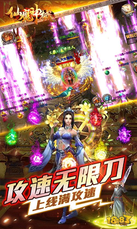 【仙魔神域】:上线送满级VIP、限定称号、永久时装、猛虎出山勋章、200万元宝、200万钻石。送极品异火,全新异火系统,增加各种特权和属性,战力狂飙。送全屏吸怪神技,配合高速半月大风车,免去全图跑断腿找怪烦恼。攻速无限刀,上线直接升级胡家刀法可达版本满攻速。