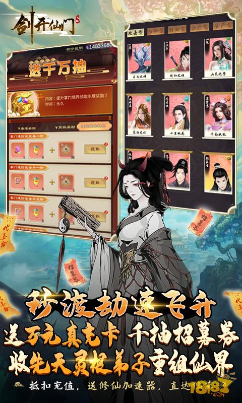 《剑开仙门(开局免充修仙)》是一款放置挂机修仙手游,内有超级修仙系统修炼加速器,完成系统任务可获得狗策划发行的代金券、充值活动全都能抵扣,作弊商场让你加速提升、享受重生称霸仙界的快感!精美细腻的游戏画面,高清的画质,大量BOSS门派等你征服,强力前世弟子、震派仙兽、让你的战力起飞,修仙世界以你为尊!