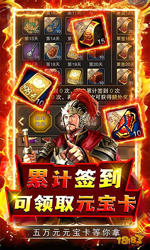 上线福利:GM2、1亿元宝、1亿银两、1亿粮草、1亿士兵 福利介绍: 1.任务得抽奖券、真充卡,签到更有万元元宝卡领取! 2.GM商城全部1元宝!科技寻宝海量道具等你来! 3.VIP奖励免费领取四大美女西施! 4.累计签到领5万元元宝卡! 5.达成成就令海量道具,完成活跃更有充值卡领取!