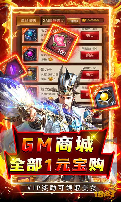 上线福利:GM2、1亿元宝、1亿银两、1亿粮草、1亿士兵 福利介绍: 1.任务得抽奖券、真充卡,签到更有万元元宝卡领取! 2.GM商城全部1元宝!科技寻宝海量道具等你来! 3.VIP奖励免费领取四大美女西施! 4.累计签到领5万元元宝卡! 5.达成成就令海量道具,完成活跃更有充值卡领取!
