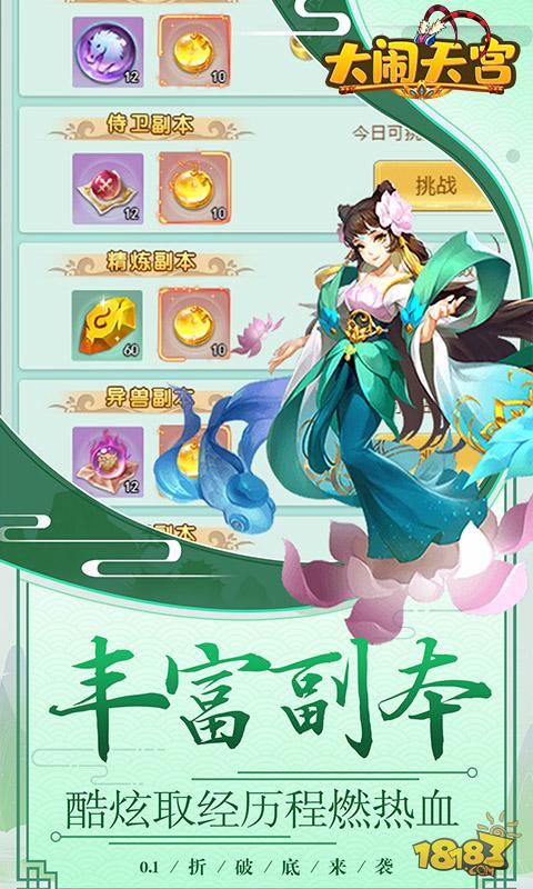 《大闹天宫(0.1折扣版)》是一款Q版回合制游戏。开局就送648元红包、紫色侍卫·邓九公、元宝*8888、绑元*100万、银两*1000万!精美2DQ版人物设计,搭配神话故事剧情,实力打造精品回合制经典!酷炫坐骑共同遨游三界,独有万千道具自由回收,多样经典回合玩法无穷乐趣!