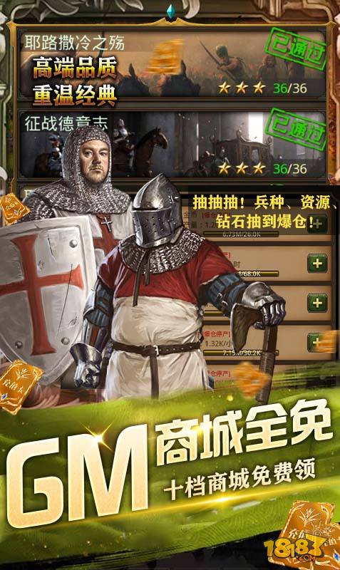 《攻守兼备(GM点充科技)》是一款经典中世纪背景SLG手游,登陆免费点击充值,激活游戏内VIP等级。上线就送VIP12、88888钻石、888888金币!在线直接领取一万抽,五星神将哥伦布保底必中,还有每日百连抽,各类金币资源应有尽有。超级福利包中更有无限资源、十档GM特权等豪礼只待领主大大们前来免费领取!玩家在游戏中化身荣耀领主,建造家园、招兵买马,带领众多名将征战四方结交天下豪杰,加入联盟并肩作战。快来玩《攻守兼备(GM点充科技)》,这是权谋战略之间的较量,在战乱的世纪中建立自己的势力吧!