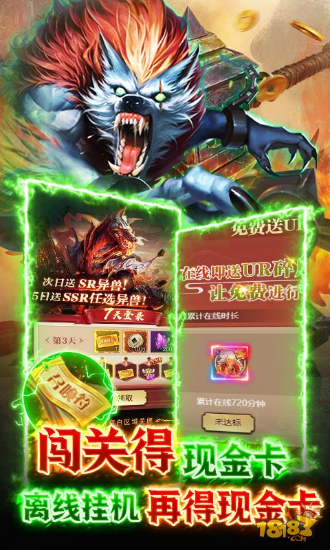 1.新版本大福利!上线即领至尊VIP3,19999999元宝,5000万金币,绝版称号! 2.免费手撸真充,能刷多少个648你的手速说了算,每天至少30个648等你来拿! 3.七日登录:直接送1万元真充卡,使用同时能激活线上累充活动,让白嫖进行到底! 4.全新异兽:登录免费领取全新异兽魔化饕餮,从此大荒世界又多了一位主宰! 5.策划福利:6大元宝转盘等你转,免费送30个648的元宝任你抽,抽到你手软! 6.充值比例提高到1:60000,元宝再也花不完了,你还不来下载玩玩看吗?