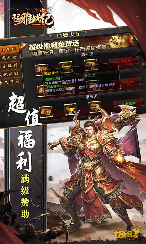 ★超高充值比例1:10000,超多白嫖福利; ★上线即送开天斩、逐日技能,PK神器,打怪神器,打怪刀刀切割; ★满级赞助免费获取,满级VIP打怪签到也能激活; ★装备都能打,材料怪物爆出,爆率超高; ★玩法简单,一切专为激情打造!