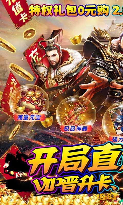 登录即送VIP8,VIP晋升卡 千元充值卡,28888元宝,188万银两 最高领取两千抽,特权VIP一元宝礼包 贵族福利每日领,挂机升级领豪礼