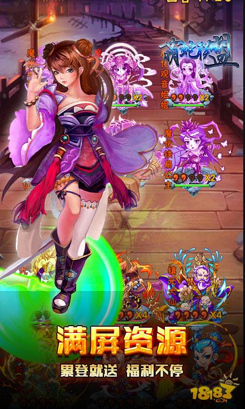 萌蛇联盟(满屏无限福利)是款游戏以西游为游戏背景。 玩家出生在西游记中,为了守护师傅唐僧安全到达西天取经,与各路势力展开激战,组建属于自己的小队,带着伙伴砥砺前行,游戏玩法新奇,上线送至尊V、千万元宝、千万银币,登录就送千元真充卡,无限资源福利多,激活每日可无限领取资源,每日完成活跃度,豪礼0氪拿,0氪也能玩到爽。还等什么,快来开辟自己的取经道路。
