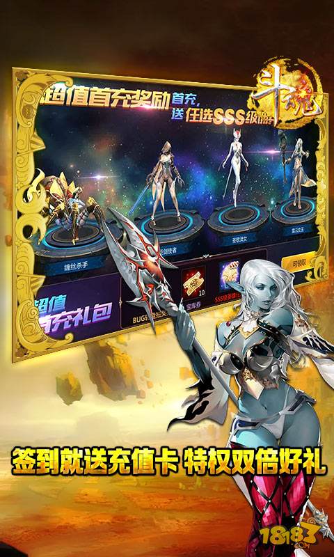 1、上线GM特权、SS任选、钻石金币豪礼领不停 2、BUG转盘转不停,道具、英雄卡、充值卡样样都有 3、签到即可领充值,GM特权翻倍!