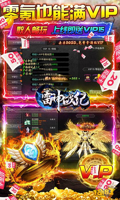 ★充值比例:1:1000(元宝),内置高级挂机辅助,100%超攻速畅快打金。 ★散人畅玩。上线即送满V,不充钱也能获得满级VIP; ★上线赠送道具:99万元宝、[称号]龙的传人*1、[时装]冥域战神体验*1、幸运寻宝十连抽、金疮药(小)*99; ★上线赠送属性:100%攻速属性,刀刀超级切割; ★光速打金。所有货币均可打怪爆出,元宝超好打,游戏内还能获得现金卡激活线上充值活动; ★零氪超爽。首爆首杀奖励大量充值货币,开启传奇高爆新体验;