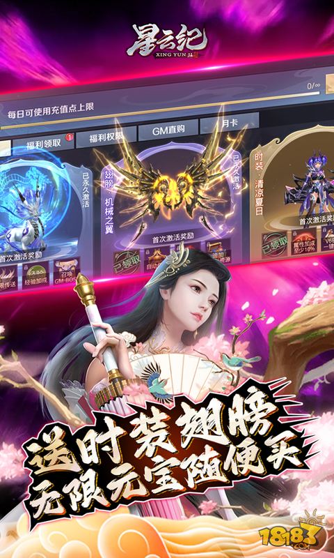 创角即送:满级VIP;GM12;真充卡1元*1000;88万元宝;翅膀“机械之翼”;坐骑“暴躁小龙虾” 1、满V开局,免费送GM特权,GM12 2、上线就送特色暴躁小龙虾坐骑,个性翅膀“机械之翼” 3、充值比例1:2000,元宝首充5倍,续充及之后所有充值额外赠送100%