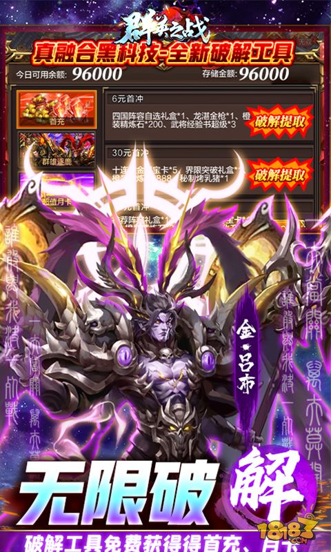 群英之战全新金将版本六大福利馈赠 海量启动资金-888万8888元宝、8888万8888银两、兔年大红包、称号-天选之人!还有线下四阵营全红将礼包码、四阵营神兵礼包码、兔年百抽礼包码等各种好礼邀你兑换! 真融合黑科技-全新破解工具,首充、月卡、培养资源礼包、金将礼包、无限资源统统可以通过工具免费获得,破解直充、破解币获取大量元宝、破解币! 全新现金版本-通关精英、噩梦关卡可掉落大量现金卡碎片,可免费合成获得现金点用于直购礼包和所有充值档位。 臻新金将降临-新版本上线双金将治疗vs乱世,全新阵容组合彰显主公勇武!七天登录可免费获得最强金将阵容。 无限元宝获取-上线即送神将特权,激活无限打金,通关所有难度的关卡都能获得元宝,一直刷一直有! 2023群英赠礼-等级达成获得千元赠礼,登录可领大量真充及各种珍稀道具,更有无限连抽、十倍元宝首充等你来体验!