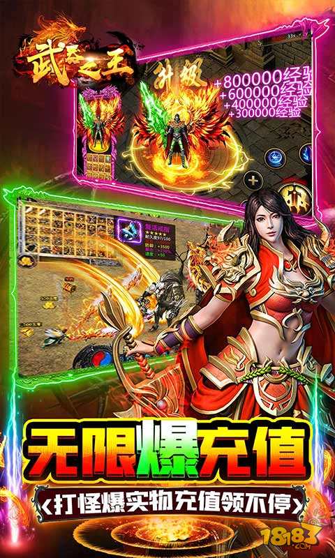 武器之王(西游超变爽爆充)主线八十一难还原街机西游度厄传的背景,融入进传奇中,各个大陆副本天马行空,独树一帜,游戏内怪物,地图副本,活动都根据西游展开,玩家耳熟能详,能够一秒读懂经典,游戏内海量福利,打怪无限爽爆充,零氪一样玩的爽!