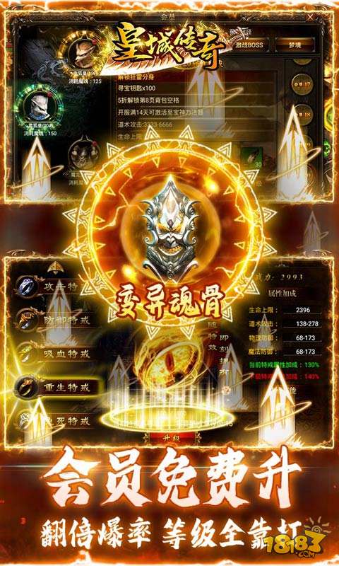 1、上线送贵族10 变异魂环 全套神级技能书 2、实物兑换 最高获得648红包 3、1.85复古合击版本 翻倍掉率 装备全靠刷 4、会员免费升 翻倍爆率 等级全靠打 5、升级送万元充值卡 战力直接起飞