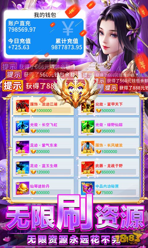 1、上线赠送游戏管理员、送满V、元宝*100W、绑定元宝*500W、银两5000W、以及海量材料; 2、充值比例1:2000,首充直接赠送50倍元宝、焱火麒麟,以及顶级称号; 3、登陆直接送游戏管理员后台,免费破解充值、免费累充、免费特权卡; 4、登陆在线送首充,顶级至尊武器、神兽·南小企免费领取; 5、一元盲盒任意购,体验一发入魂的快乐; 6、神权GM永久打BOSS掉落充值卡,元宝充值不用愁; 7、在线领取活跃欧皇大礼包(68级开启),千元充值随机抽取 8、无限资源阁开启永久无限领取各类资源,升级毫不费劲;
