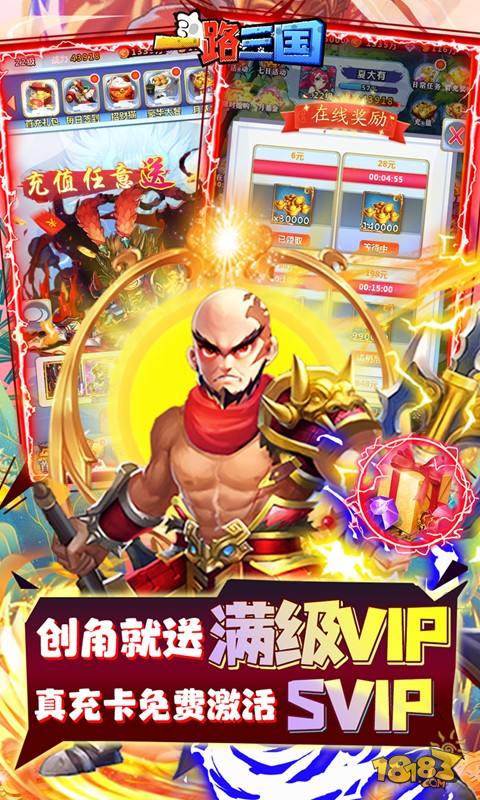 创角即送:VIP15、一万元真充卡、888万金币、888888元宝、5000体力 1、新版打金特权,免费打金换真充 2、创角就送万元真充,每日在线再领2000元真充 3、免费激活首充礼包 即可获得强力彩金将[真吕布] 4、“无限资源”特权免费开启,各种资源领到手软,首日即可激活无限元宝 5、开局还送真满V 金币888万 元宝88万 体力5000 6、还可免费提升SVIP,豪华特权礼包任性购 7、次日送无双金将,三日送金色宠物,连续登录还有海量资源领不停,元宝、进阶丹、体力、宠物免费拿