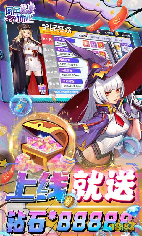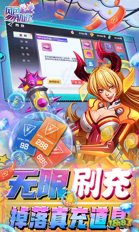 \"1.上线送满V,钻石*88888,100元真充卡,金币*10w 2.创角领V10等级特权,累计签到领真充奖励! 3.无限刷充道具,日领稀缺资源! 4.超高战斗加速特权,通关奖励免费获取!\"