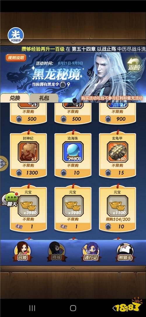 联动秘境:元宝兑换比例最高,648 元可获 200 抽 + 300 兑换币,新手建议优先抽秘境;