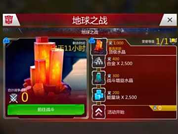 变形金刚的活动是每周周五开始至第二周周一,活动开启后可以在屏幕的右下角点击活动按钮进入到活动界面,有的是需要你自己奋战到底的个人战,也有和联盟的小伙伴一起努力的联盟战,还有大家互相竞争的排名战。当然在排名战中排名靠前的联盟或者玩家也会获得更多稀有的奖励呢!