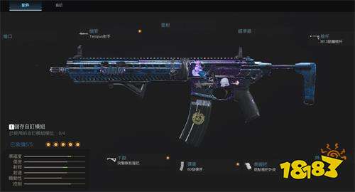 枪管tempus射手、枪托M13骷髅枪托、下挂突击队队前握把、60发弹匣、斑点握把、瞄准镜可以替换前握把。如此,该款枪械将发出强劲的动力,为玩家的作战提供保障。