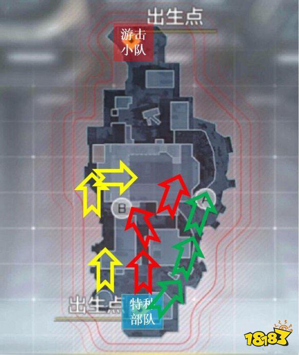 黄色进攻路线:这条线是游击小队最重要的一条线,这条线四通八达,游击小队只要占领这条线就可以自己切换进攻路线。