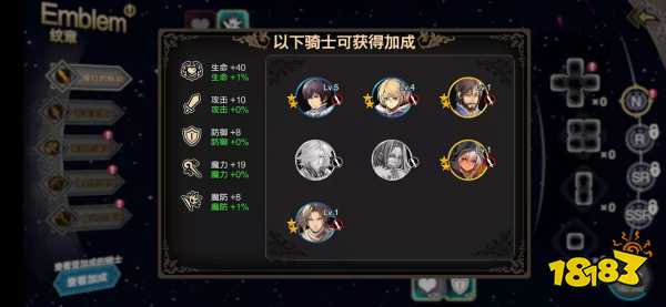 纹章突破分为5个类型,对应斩、打、突、远、魔五个骑士职业类型,成功启动纹章图形后,对应的骑士就会得到属性加成。