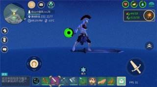 飞起来后选中快捷栏里面的武器,选择剑就是站在剑上面,斧头就是站在斧头上面。