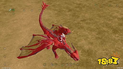 静止时是收起翅膀,尾巴会不安分的左右摆动,随着呼吸全身浮动,无粒子特效,玩家则是单膝跪蹲在火龙背部。