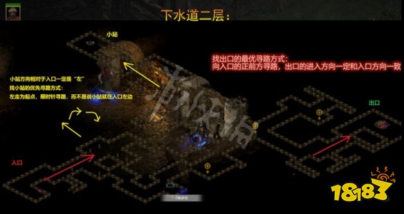 请从地图最下方的位置进入下水道,一层出口大概率会在入口的附近。