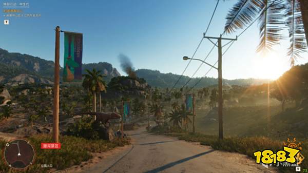 在跑上坡后我们会见到小骗子咖啡厅,画面的左上角有一只翼龙