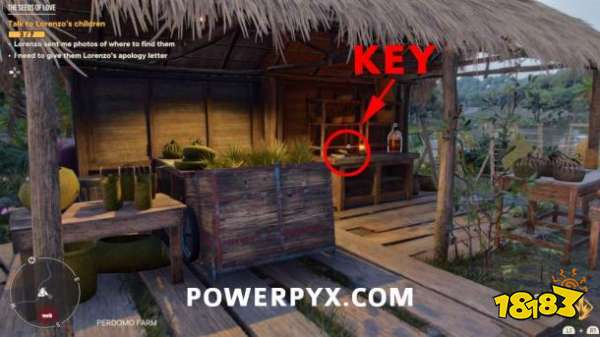 在 Perdomo 农场,从茅草屋顶的小棚屋里拿钥匙,然后用旁边建筑物上的钥匙找到里面的 Lorenzo's Juan。
