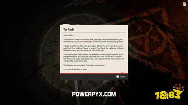 Triada Blessings 任务位于 Isla Santuario。它从阅读奥卢瓦洞穴内的文本文档开始。
