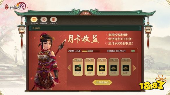 通过开通缘起的月卡模式,除了解锁交易权限和金币上限外,更多的是提供一个玩家可以自由选择游戏内容并获得收益的全新系统。