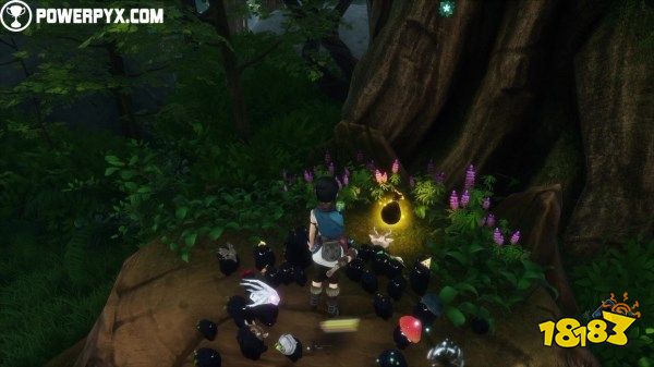 在森林之泪的正前方,可以看到远处一些腐化植物挡住了通往洞穴的路,洞穴里可以找到这个花神社,引导灵魂净化它。