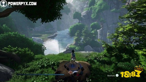 返回可召唤灵魂的区域并进入断桥,继续往前走到尽头可以看到一座被树根缠住的小桥,此时就不要继续往前走了,往四周看找到一条小溪,沿着小溪的路径一直走到尽头即可找到没冥想地点。